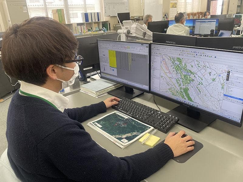 森林調査で得た情報を基に、伐採木の効率的な搬出・運搬方法や、収益が見込める出荷先の木材市況を考慮し、必要な人員や機械の数量を専用のフォーマットに入力して作業実施方法と経費を計画する作業です。